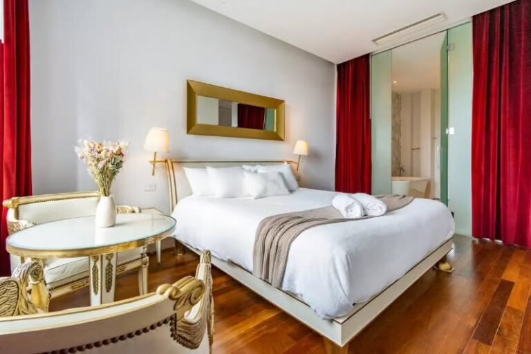 Each room includes high-end amenities such as smart TVs, premium linens, spacious bathrooms, and personalized guest services.